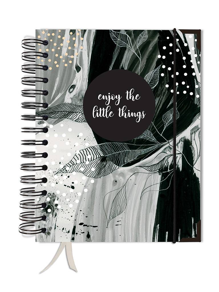 Parametry zastosowanego papieru odgrywają znaczącą rolę w komfortowym korzystaniu z dziennika. Gramatura 120 g/m2 oznacza, że są na tyle grube, że nie pozwalają na przebijanie się pisaków na drugą stronę kartki, ale jednocześnie charakteryzują się doskonałą strukturą i wyjątkowym poziomem bieli. Dla ułatwienia wszystkie strony zeszytu bujo są delikatnie kropkowane co 5 mm, aby ułatwić Ci precyzyjne rysowanie linii. Gotowy notatnik może stać się świetnym uzupełnieniem planera studenta lub ucznia.